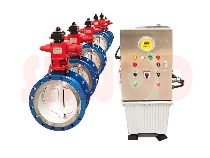 蓄能器式緩閉液動蝶閥是目前國內外較先進的管路控製設備,主要安裝於水利、電力、給 排水等各類泵站的水泵出口,替代止回閥和閘閥的功能。工作時,該液動閥門與管道主機配合,按照水力過渡過程原理,通過預設的啟閉程序,有效消除管路水錘,實現管路的可靠截止,起到保護管路係統安全的作用。