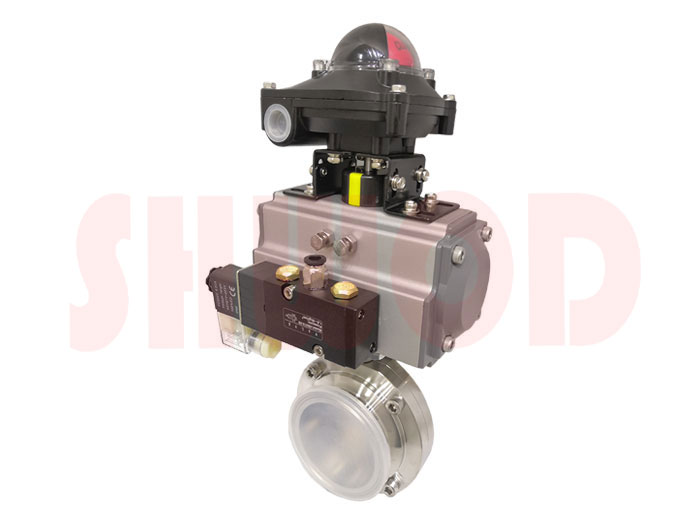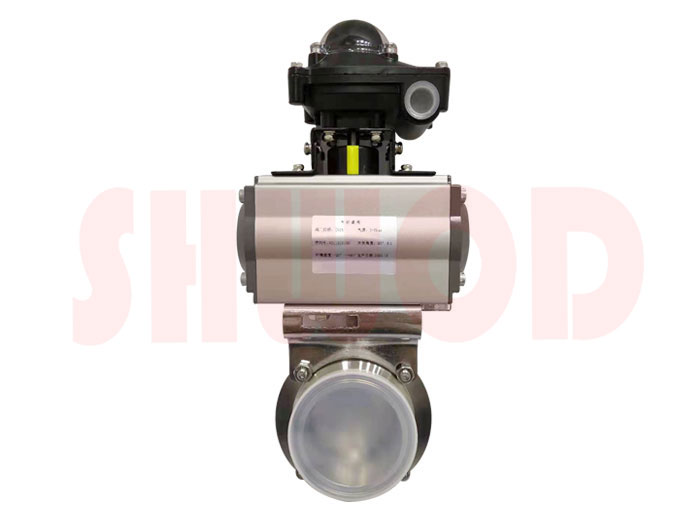 氣動衛生級蝶閥常用於對衛生等級要求很高的場所,可以滿足食品、生物製藥領域各種介質的特殊要求,其光滑、無縫、自動排空手工藝流體通道,還非常適用於蒸汽及其它就地清洗的需要。