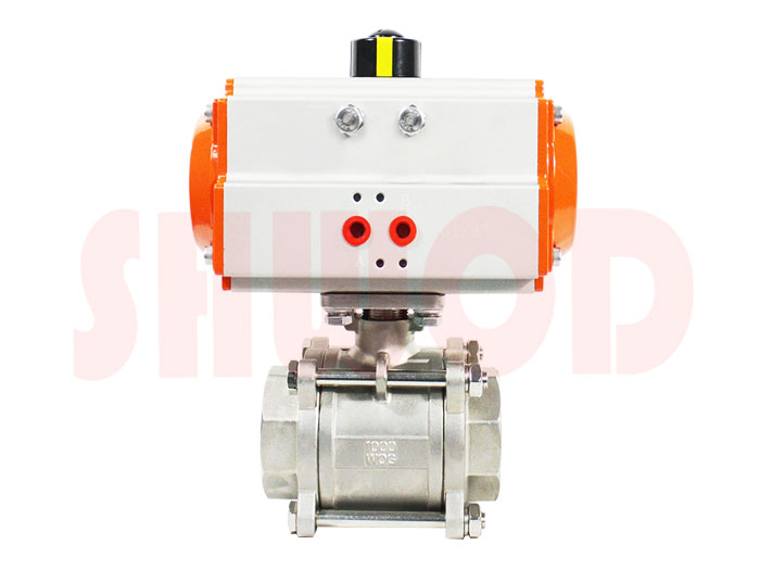 氣動絲扣球閥閥體鑄造采用台灣引進的先進工藝,結構合理、造型美觀;閥座采用彈性密封結構,密封可靠,啟閉輕鬆;閥杆采用有倒密封的下裝式結構,閥腔異常升壓時,閥杆不會被衝出。二片式、三片式球閥連接形式另有對焊(BW)承插焊(SW),並均可帶國際標準ISO支架平台和鎖定裝置。