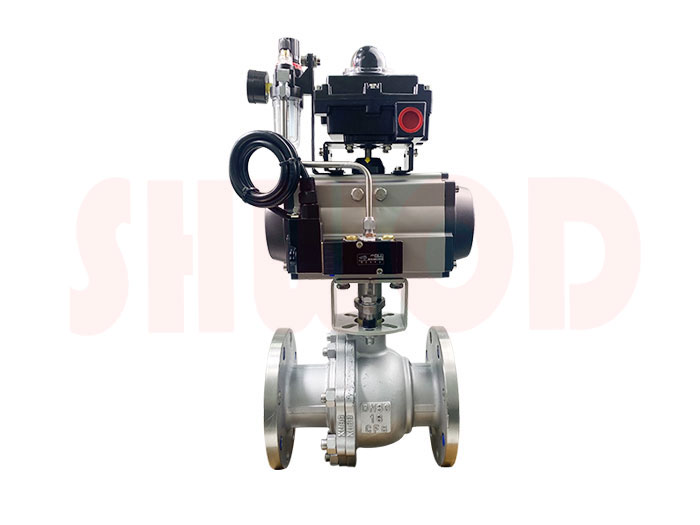 氣動高壓球閥由法蘭/內螺紋鍛造高壓球閥與氣動執行器組成,閥體材質均經過硬質及防腐處理,提高了閥體的強度,具有極好的耐壓耐磨的優點。氣動高壓球閥采用三段式閥體,使結構更加緊湊且便於裝配,該氣動球閥適用於液壓油,水,高壓氣體等介質。可配以閥門定位器輸入4-20mA的模擬信號從而控製球芯運轉的開度大小,實現對介質壓力、流量、溫度等參數的比例式調節。